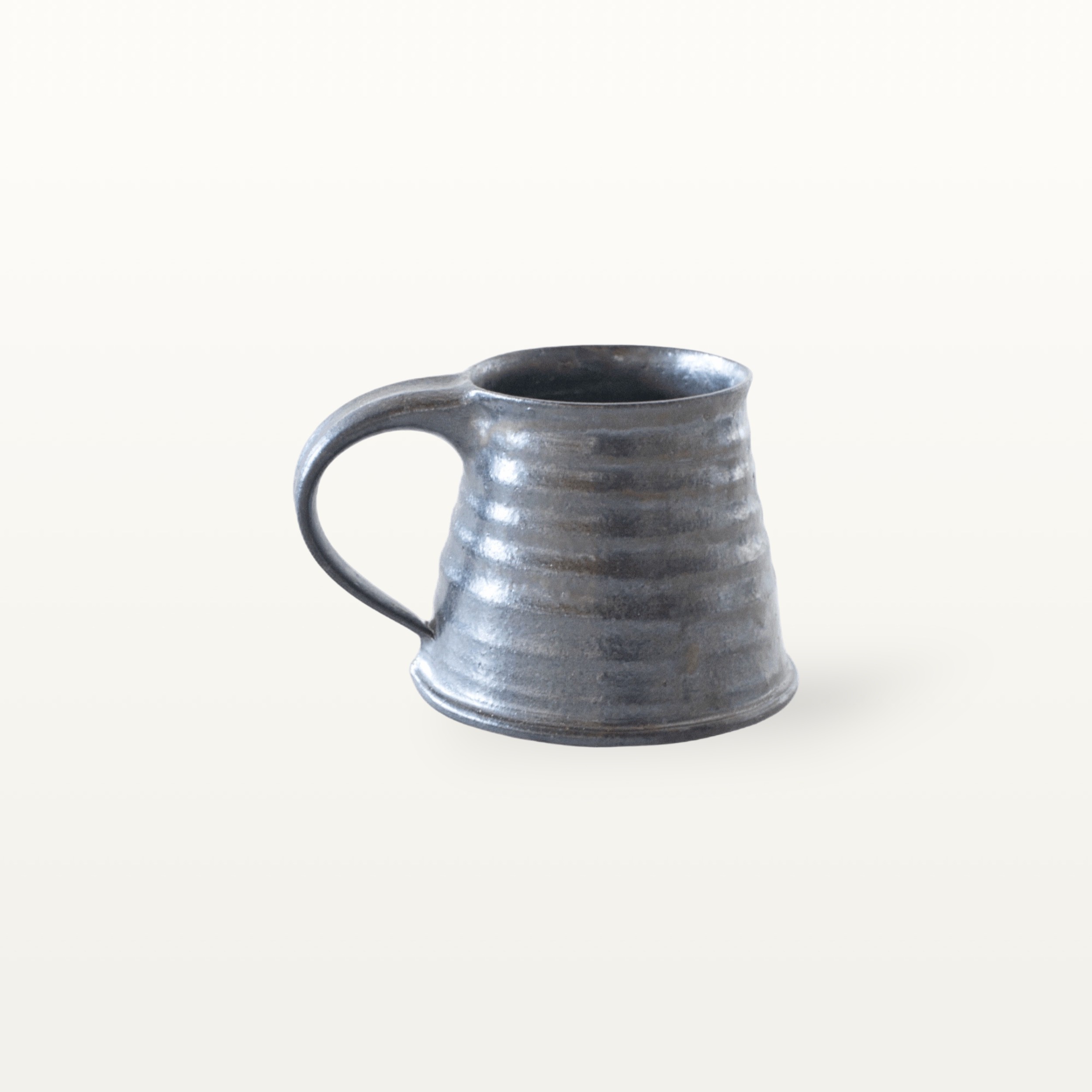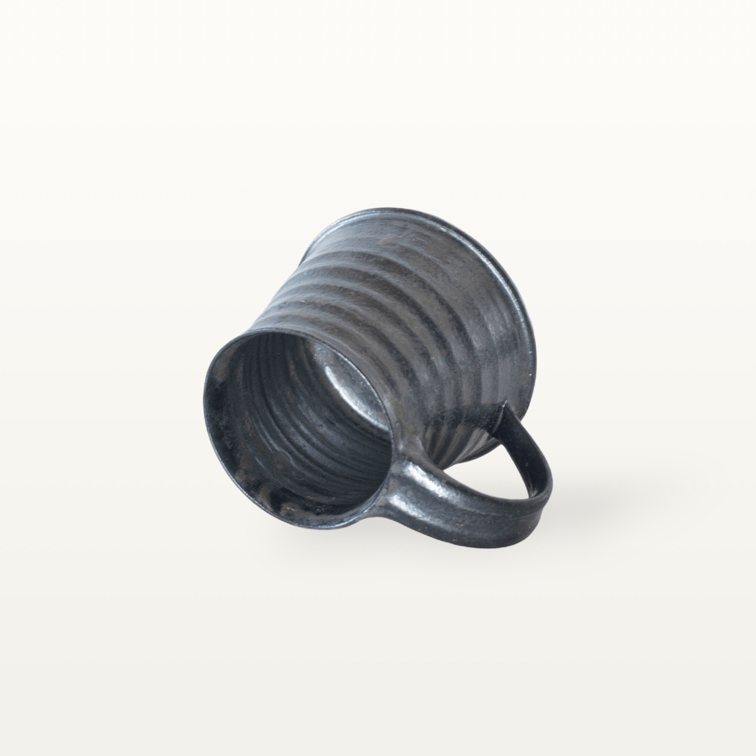 Erdige Keramiktasse mit breitem Fuß – schwarz