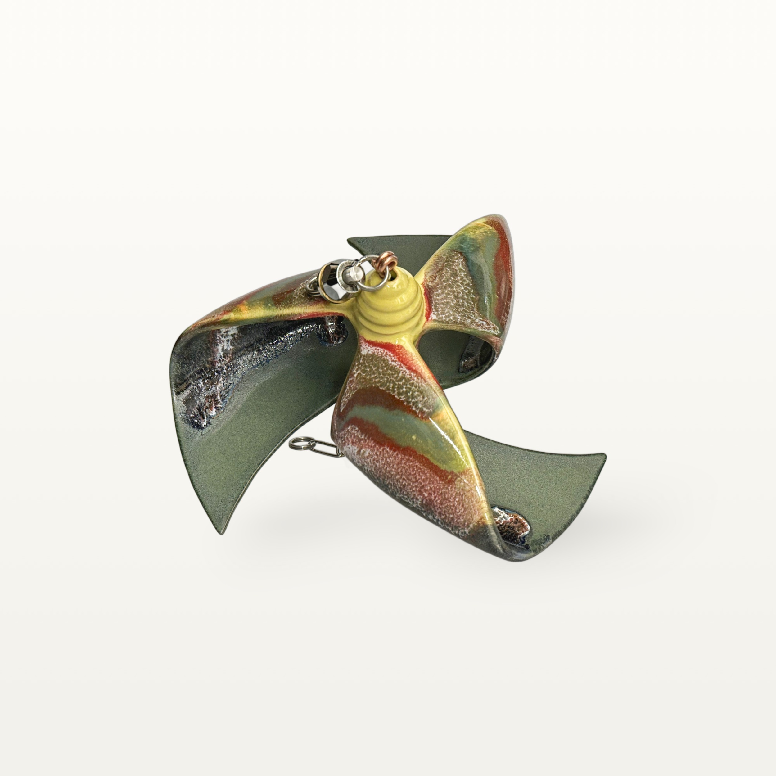 Neben der Gebrauchskeramik hat Marcel Reiß sich auf Wind- und Gartenkeramik spezialisiert. Durch verschiedene Glasurüberschüttungen bekommen diese ihren besonders reizvollen Farbton.