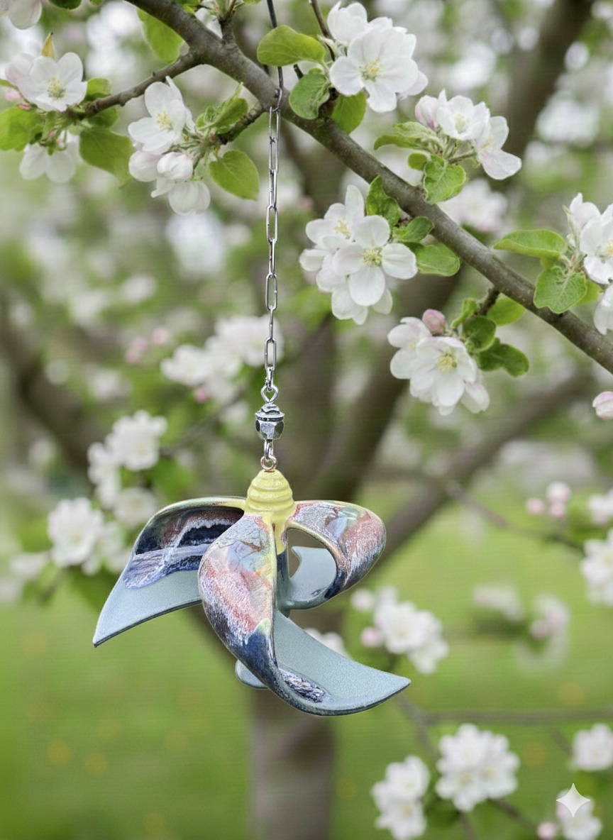 Diese handgefertigte Windmühle aus Keramik vereint kunstvolles Design mit Funktionalität. Mit kugelgelagertem Lauf, robuster 20 cm Kette und einem Durchmesser von 24 cm ist sie ein Blickfang für jeden Garten. Dank ihrer wetter- und frostfesten Beschaffenheit bleibt sie auch bei Wind und Wetter ein dauerhaft schönes Deko-Element. Ideal für Gartenliebhaber und Kunstfreunde gleichermaßen.