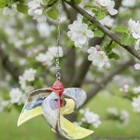 Neben der Gebrauchskeramik hat Marcel Reiß sich auf Wind- und Gartenkeramik spezialisiert. Durch verschiedene Glasurüberschüttungen bekommen diese ihren besonders reizvollen Farbton.