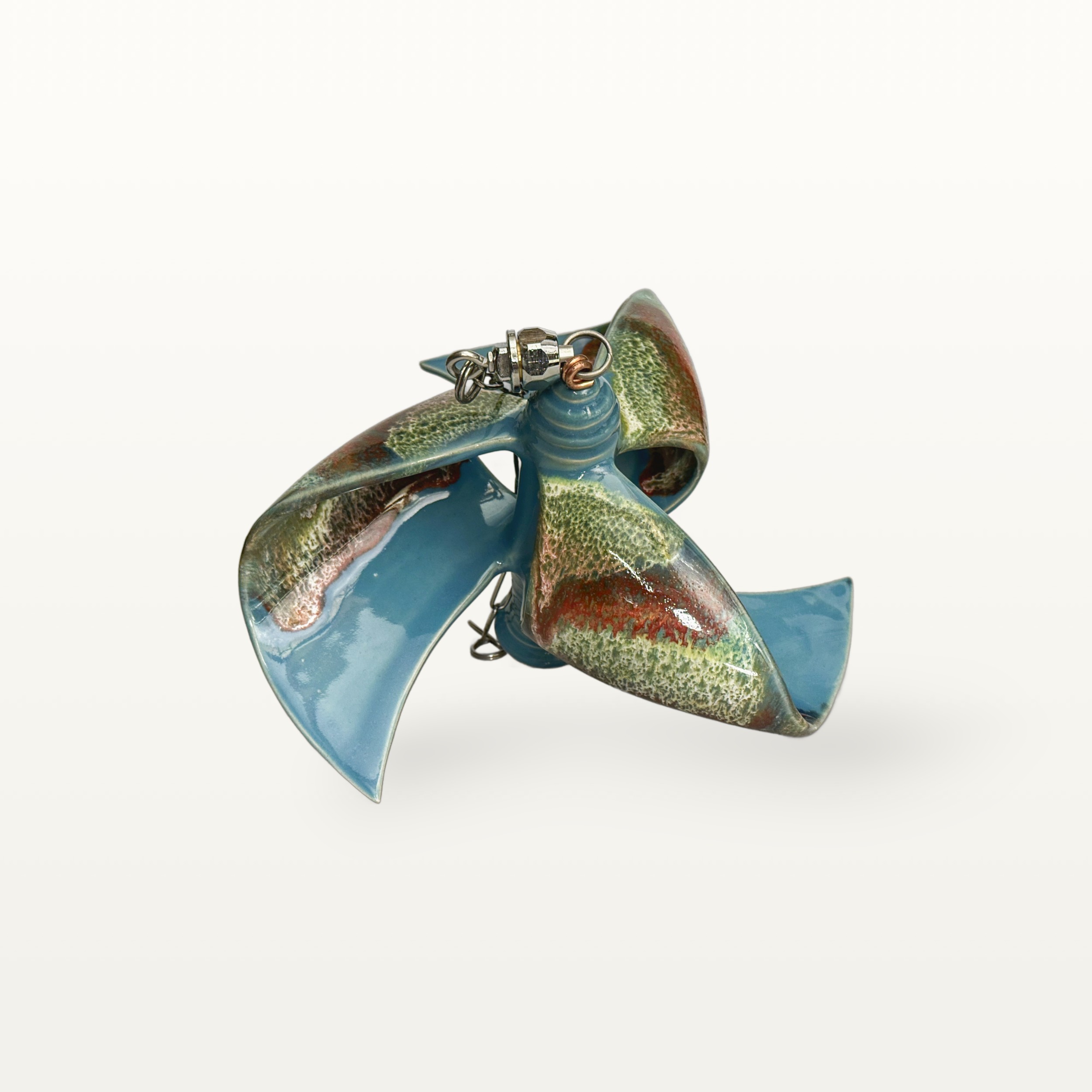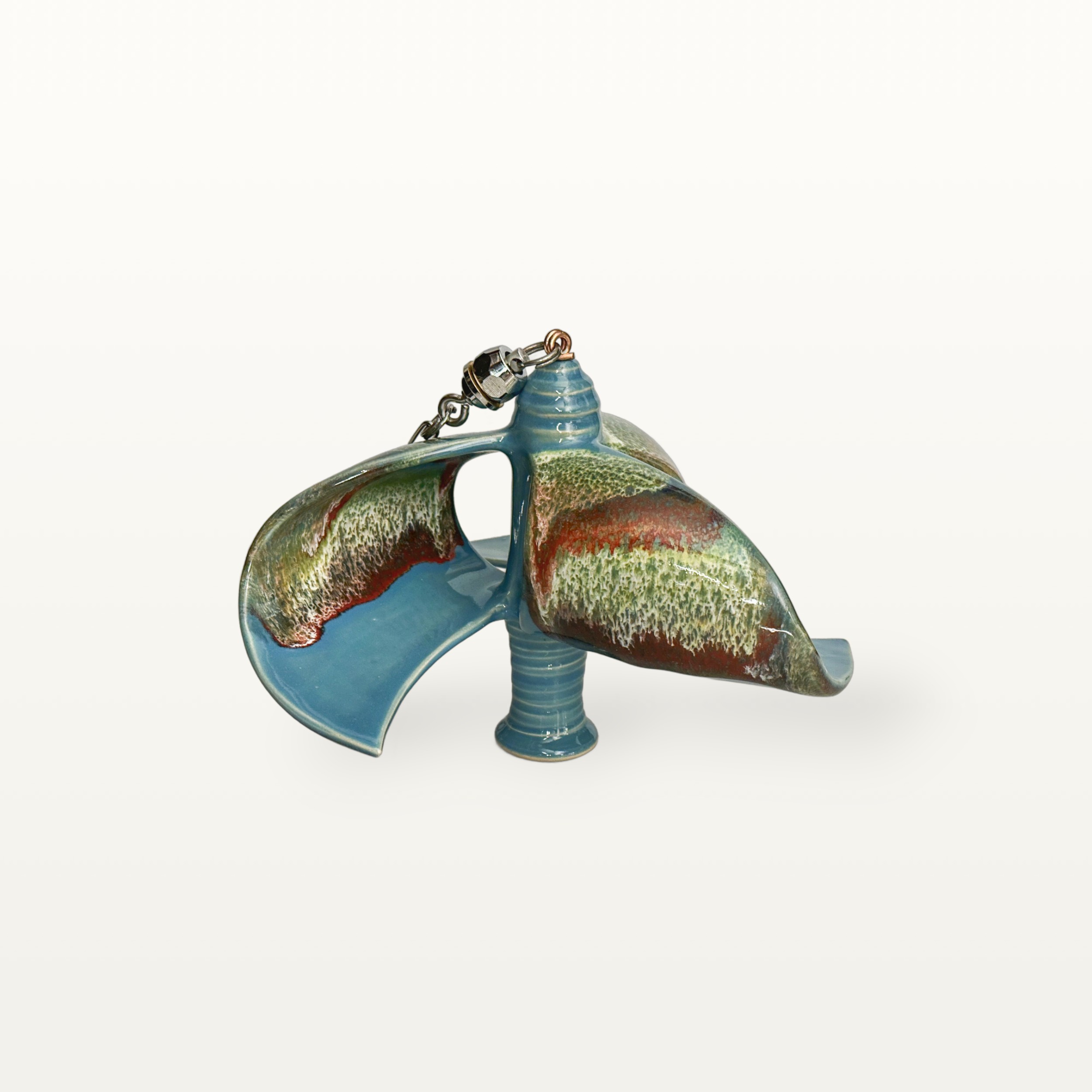 Neben der Gebrauchskeramik hat Marcel Reiß sich auf Wind- und Gartenkeramik spezialisiert. Durch verschiedene Glasurüberschüttungen bekommen diese ihren besonders reizvollen Farbton.
