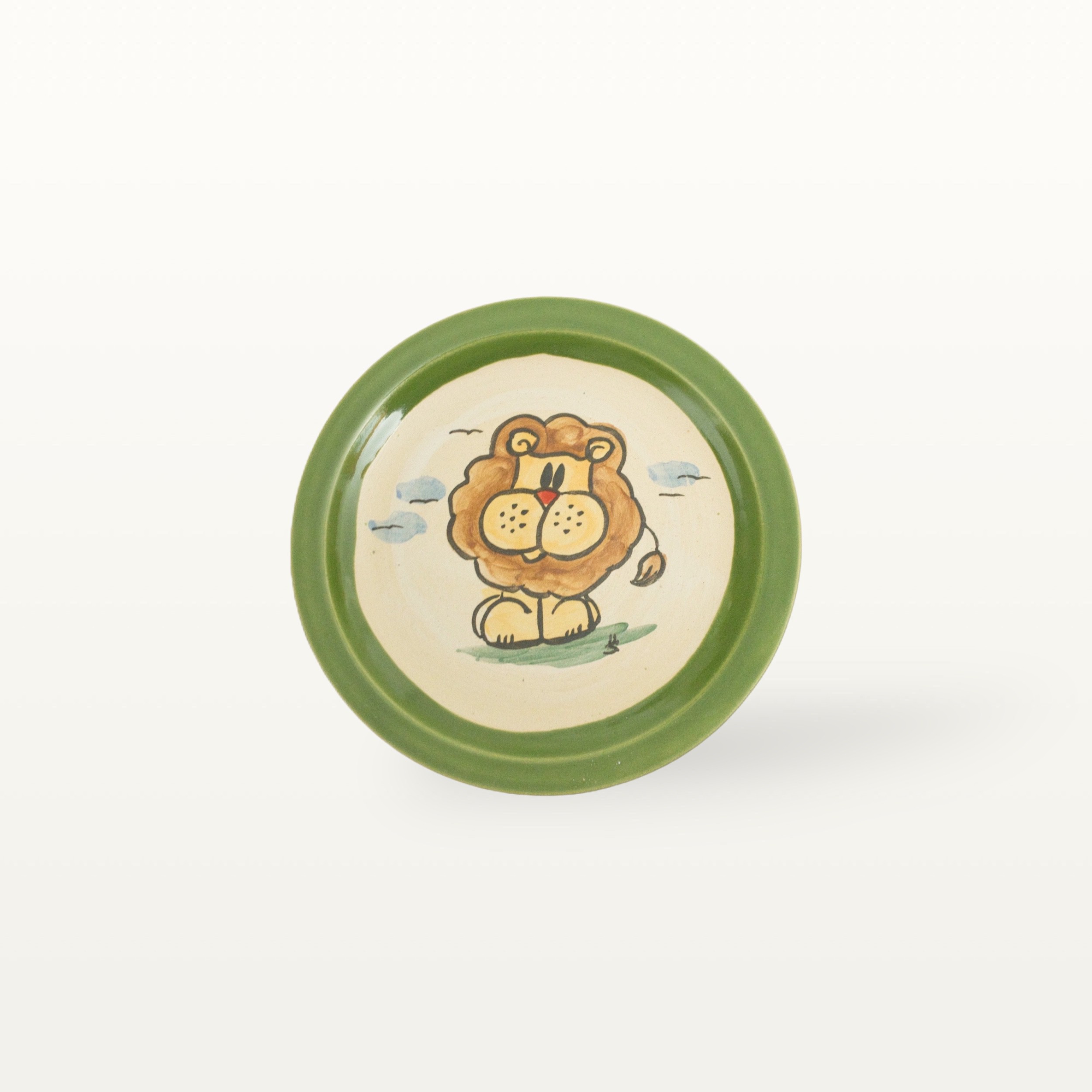 Dieser niedliche Keramik Teller im Comic-Design besitzt einen Durchmesser von 20,5 cm und wurde aus Steinzeug handgefertigt. Somit ist er sehr gut auch als Frühstücksteller geeignet. Aufgrund des robusten Materials ist er spülmaschinenfest. Der Teller aus Keramik wurde handbemalt mit einem Löwen. Erhältlich ist der Teller in den Farben Hellbraun, Grün und Blau, die den Tellerrand farbig zieren